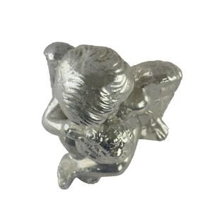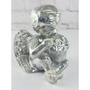 Vintage Silver Angel Figurine Cherub Statue 90s Holiday Decor Guardian Angel