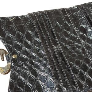 Vintage Silver & Black Guess Wallet. This leather clutch wallet features a faux crocodile pattern. Has many compartments to store multiple cards or cash. This piece may show some signs of use due to age ( as shown in photos )