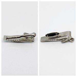 Vintage Silver & Black Marquis Cabachon Rectangle Tie Clip | Father's Day Gift