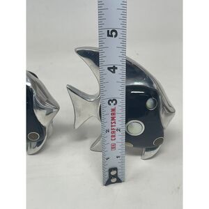 Vintage Silver & Black Metal Pair Fish Figurines With Inlaid Stone Abalone *RARE
