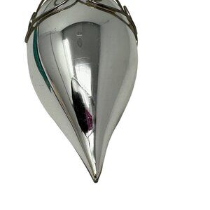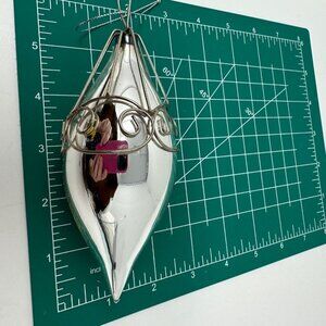 Vintage Silver Blown Glass Teardrop Christmas Ornament Wire Cage Mercury Finish