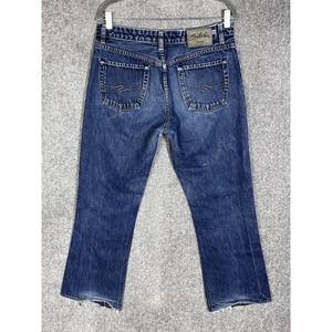 Vintage Silver Button Fly Distressed Bootcut Jeans Mens Size 32x28 Blue Denim