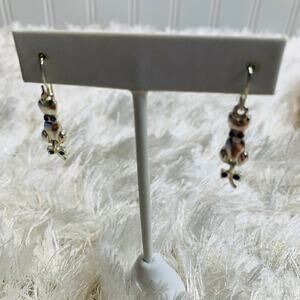 Vintage Silver Cat Articulated Tail Bow Earrings Blue Stones 1" length