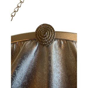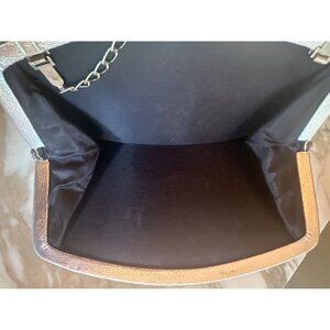 This vintage silver clutch exudes elegance with its sophisticated swirl clasp and chain strap. A must-have statement piece for evening events, it offers a touch of glamour and functionality. The spacious interior ensures essentials are securely held, while the metallic finish adds a stylish edge.