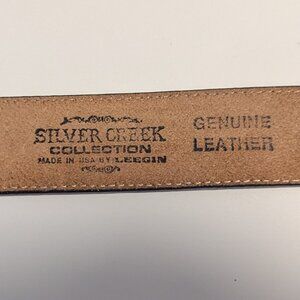 Vintage Silver Creek Leegin Belt Embroidered Leather Metal Buckle Boho Guatemalan Mexican Print Western Southwest Stagecoach Coastal Grandma Coastal Cowbirl Rodeo