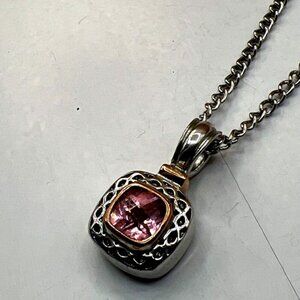 Add some bling to your day with this vintage silver and crystal beaded bracelet, paired perfectly with a pink stone pendant necklace. Shine on!