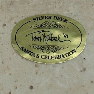 Vintage Silver Deer Santa's Celebration Signed Artist Tom Rubel 91 Chalk Santa