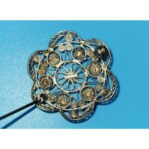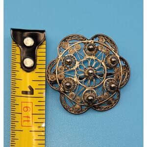 Vintage Silver Filigree 800 Shield Brooch Scalloped Edge