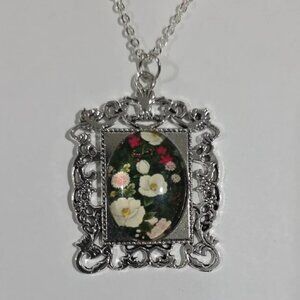 This Vintage Floral Scrollwork Pendant Necklace in silver brings timeless elegance to any jewelry collection. The intricately carved botanical design showcases delicate floral patterns and graceful scrollwork, giving the piece a classic antique-inspired look. Crafted with a polished silver-tone finish, this pendant hangs beautifully from a matching chain, making it perfect for everyday wear or special occasions. Lightweight, romantic, and full of vintage charm, it’s an ideal gift for nature lovers and fans of classic jewelry styles.