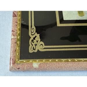 Condition is used. There is overall wear including some scratches and blemishes on the black portion of the frame and some loss of gold along the bottom border as shown in photos. The top right corners of the frame are not completely flush. Please zoom all photos for more details.