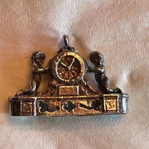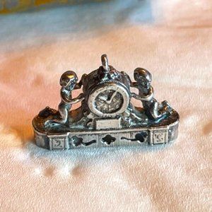 Vintage Silver French Mantle Clock Charm with Cherubs