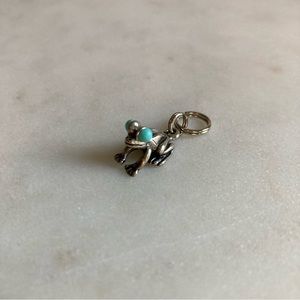 Vintage Silver Frog Necklace Pendant With Turquoise Eyes