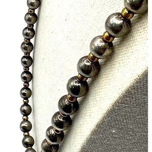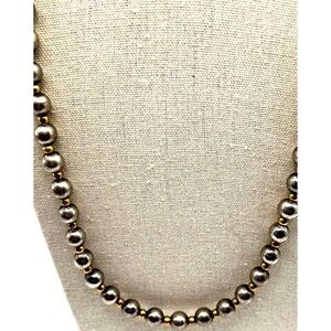 An exquisite vintage necklace featuring alternating silver and gold tone beads. Ideal for adding a touch of classic elegance to any outfit.