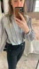 This elegant blouse showcases a sleek mandarin collar and long cuffed sleeves, crafted in a sophisticated silver and gray palette. Its boxy, buttoned design offers a contemporary and minimalist aesthetic, perfect for a refined wardrobe addition. It has shoulder pads for structure. Like new condition. While it’s a size large I can easily wear it tucked in and it fit great. I’m usually a small-medium size.