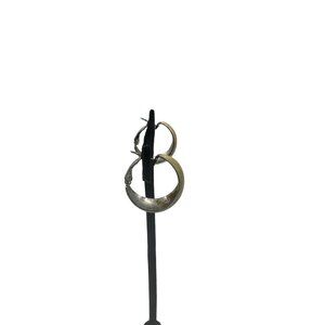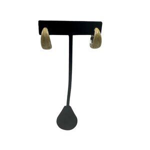 These vintage clip-on earrings feature an elegant hoop design with a distinctive silver and gold tone. Ideal for adding a touch of classic sophistication to any outfit, they complement both casual and formal wear.