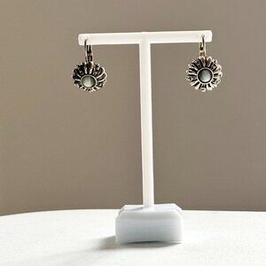 Vintage Silver Grey Glow Style Cabochon Dangle Leverback Earrings