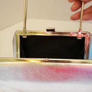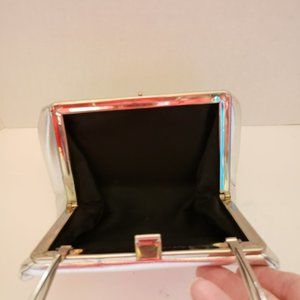 Vintage Silver Handbag with Silver Trim and Handle Black Interior Good Vintage Condition See Photos for Measurements