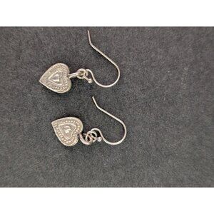 Charming silver heart dangle earrings featuring an intricate design. Lightweight and elegant, suitable for daily wear or special occasions.