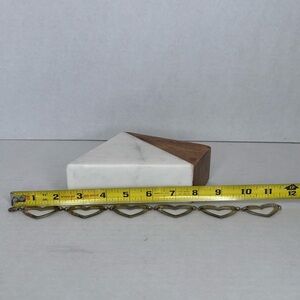 This anklet is rather large. Please see measurements in the pictures. There's definitely some wear to the metal throughout. This was purchased from an old estate sale and I am unable to find any markings on the jewelry.