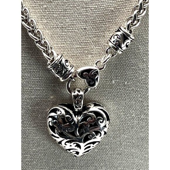 Vintage Silver Heart Pendant Necklace With Ornate Detailing 10” Long
