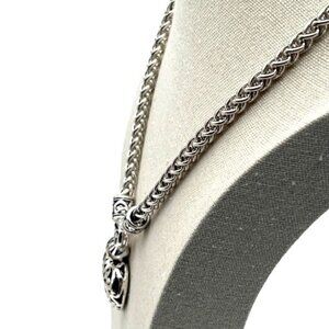 This vintage-style silver heart pendant necklace boasts intricate detailing and an 10 inches long. Perfectly suited to add a touch of classic elegance.