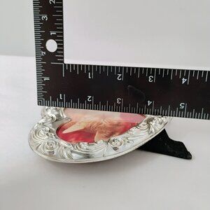 Vintage Silver Heart Photo Frame With Sleeping Cat Print, Ornate Mini Picture 4"