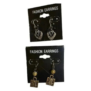 Vintage Silver Hearts and Bronze Lock Style Hook Fashion Earrings, New Old Stock, Great Condition