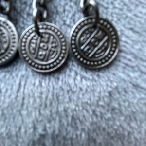 1.5 by 1.5 metal squares with half moon, black stone and dangle coins.
