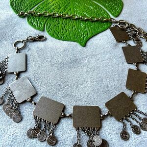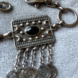 Vintage Silver Heavy Metal Moon coin belt with black stones!
