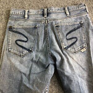 Vintage Silver Jeans Mens 32x33 Blue Faded Duke Straight Leg Whiskering Y2K 90s