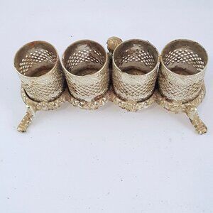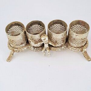 SF Sam Fink Filigree lipstick holder cherub footed silver tone vanity tray