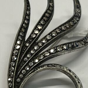 Vintage Silver Marcasite Feather Leaf Brooch Spray Pin Push-pull Trombone Clasp