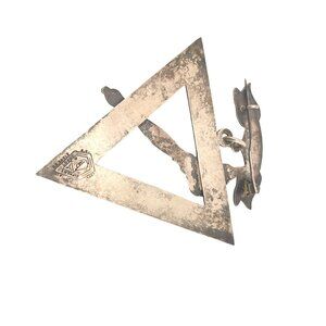 Vintage Silver Masonic Jewel Pin Brooch With Engraved Triangle and Torch Emblem