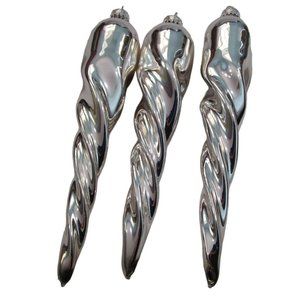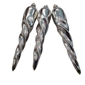 A set of three vintage silver mercury style glass chubby icicle finials from G&D; in excellent used condition. These beautiful vintage pieces add a touch of elegance and nostalgia to any decor. Each has a gold crown and a hole at the pointy end from the manufacture process.