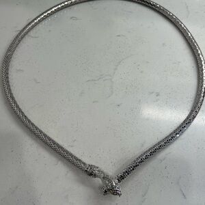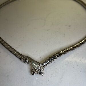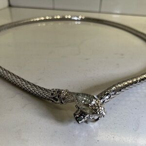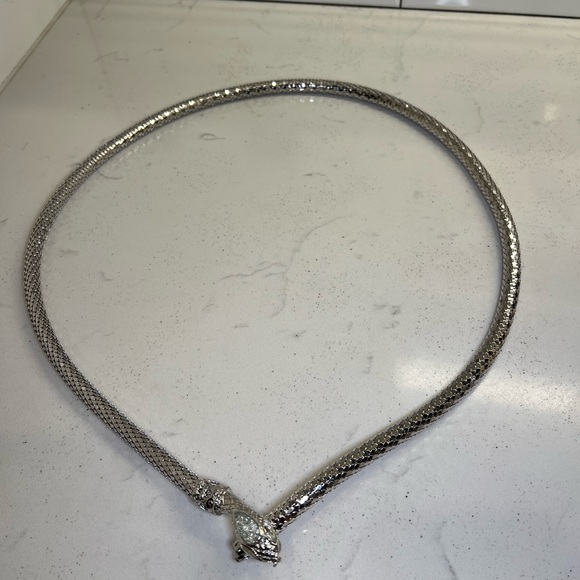 Vintage Silver Mesh Snake Necklace/Belt Crystals Eyes Head Designer 38”