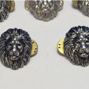 Vintage Silver Metal Lion Head Tie Pins Lot of 5
