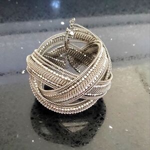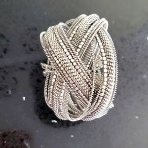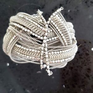 This stunning silver braided bracelet adds a touch of elegance to any outfit. Perfect for any occasion.