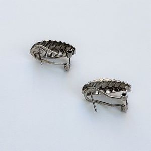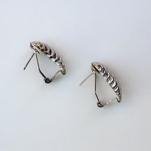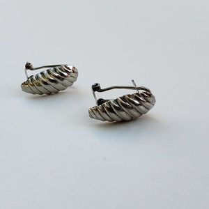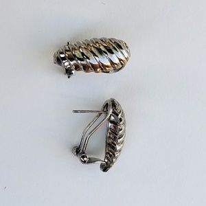 Vintage Silver Metal Earrings. Not sure what type of metal, but they shined up beautifully with a polish cloth. They are lightweight hollow, swirl-oval-dome shaped. Design is BOTH post and lever-back so they are very secure! Length is 7/8".