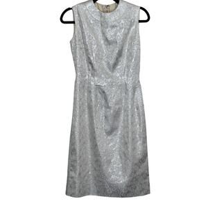 Vintage Silver Metallic starburst embossed back zip dress Monroe inspired