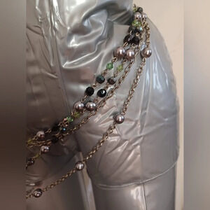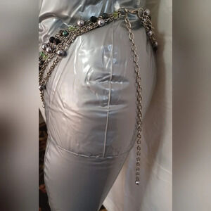 vintage faux crystal mixed colored beads silver metal linked chain multi layered drape hang adjustable waist belt. see pictures. they are part of the description. full length 44"
