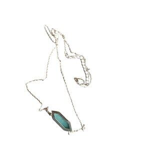 Vintage Silver Necklace Sea Foam Green Gem Stone 18” Boho Minimalist Futuristic