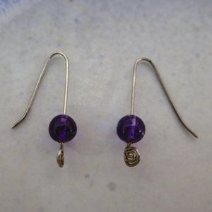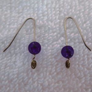 Vintage silver open hook earrings with purple bead, ‘80s, I attempted to show the earrings in different settings but colors may vary with lighting