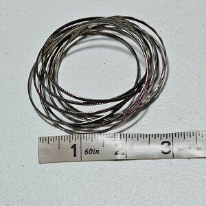 Slight tarnish on some bangles, minimal wear visible. Diameter = 3 inches.