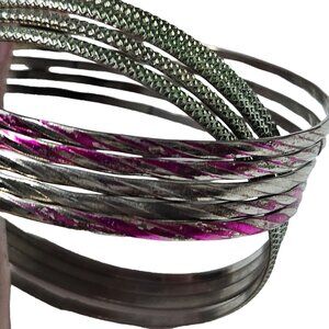 Vintage Silver Pink Bangle Bracelets Set Of 9