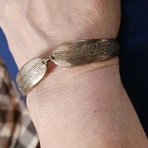 This vintage bracelet is made from the handles of two silver plate spoons - so pretty!