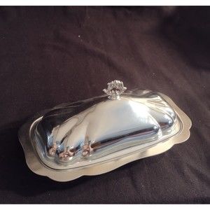 Vintage Silver Plate Butter Dish With Glass Tray