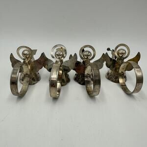 Vintage Silver Plate Christmas Angel Napkin Rings 1.5" Table Decor Set of 4