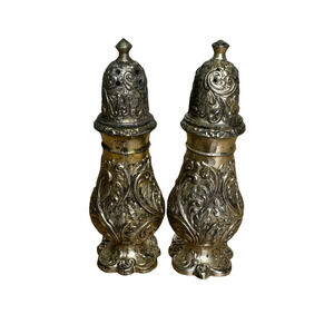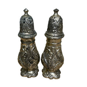 Vintage Silver Plate Rococo Repousse Salt Pepper Shakers Pair Ornate Baroque