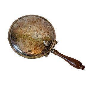 Vintage silverplate silent butler crumb catcher pan with an engraved lion crest on top. Measuring approximately 10.25" long (including handle) and 2" tall. There is natural tarnish, and it will be sent as is. Leave it tarnished for a vintage look or it could be polished to bring back the original shine.