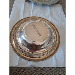 Vintage Silver Plate Wm. Rodgers Round Serving Bowl Rope Trim 12”.